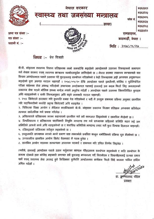 स्वास्थ्य तथा जनसंख्या मन्त्रालयले समेत प्रेस विज्ञप्तिमार्फत उपकुलपति प्राध्यापक भएको भन्ने प्रमाण प्राप्त नभएको जानकारी गराइसकेको छ ।