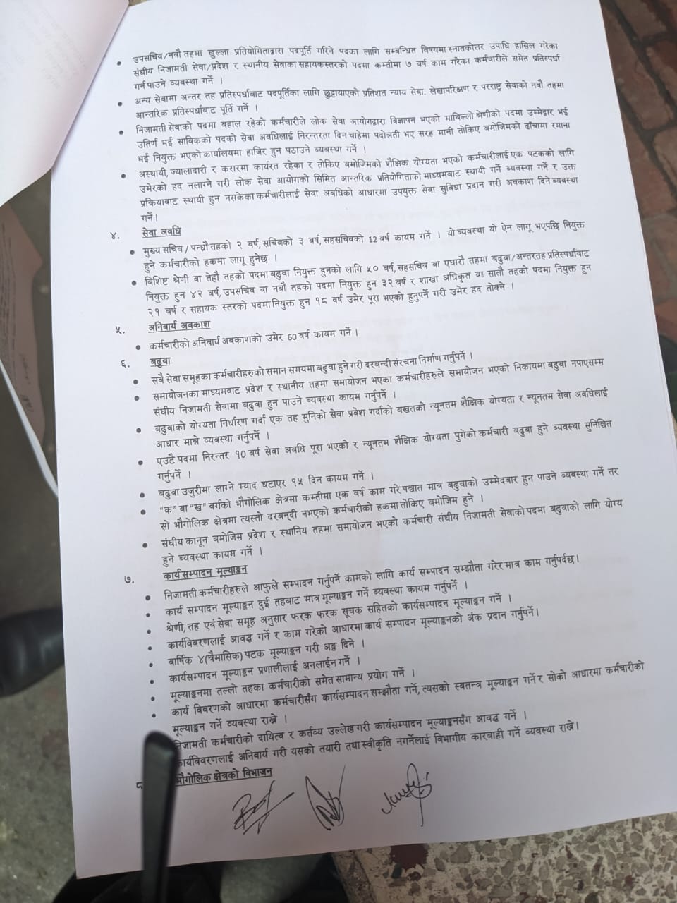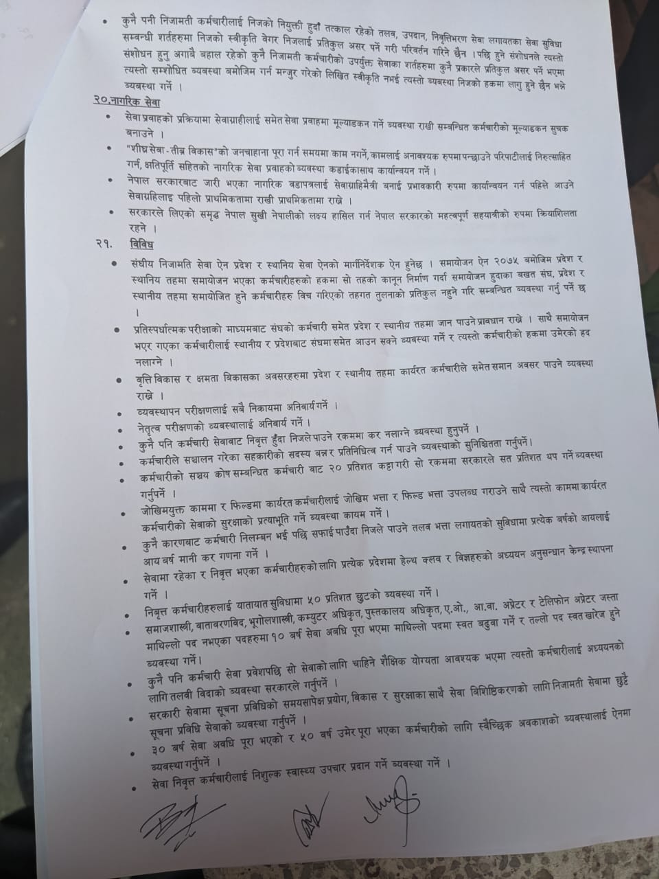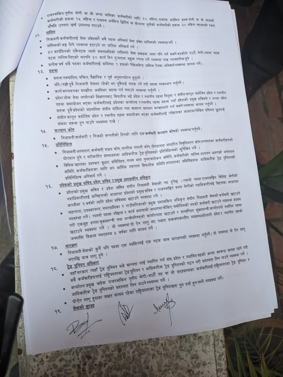 अनिवार्य अवकाश, बढुवा, कार्य सम्पादन मूल्याङ्कनसहित‌का २१ बुँदे माग यस्ता छन् :