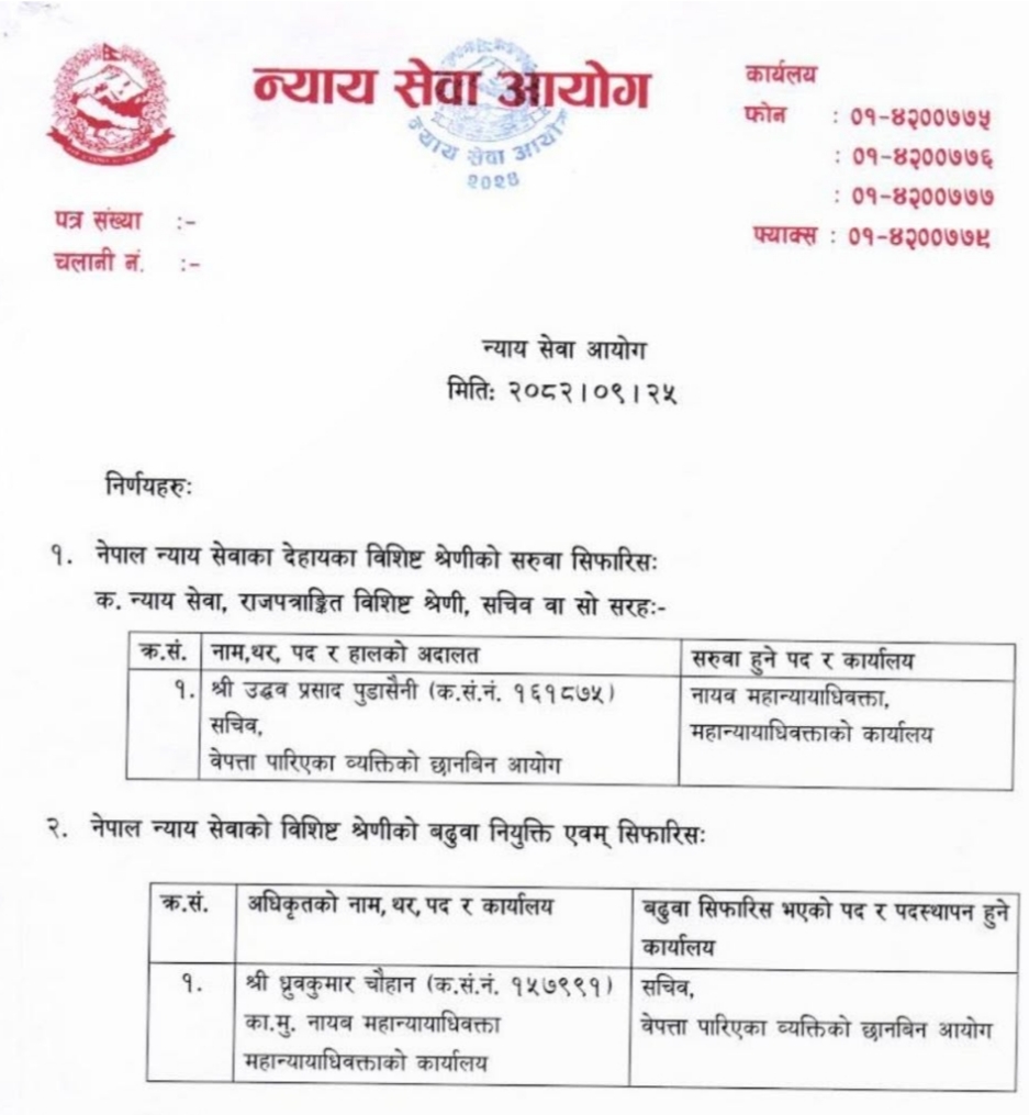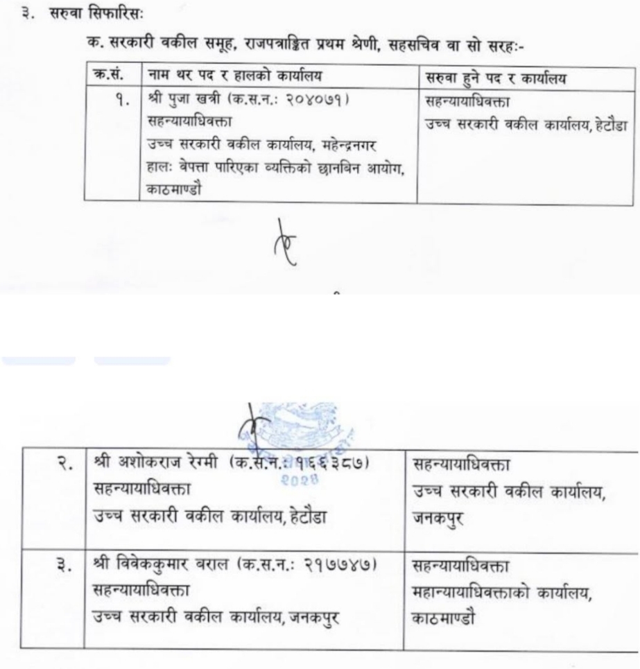 न्याय सेवा आयोगले ४४ उपन्यायाधिवक्ताको पनि सरूवा सिफारिस गरेको छ।