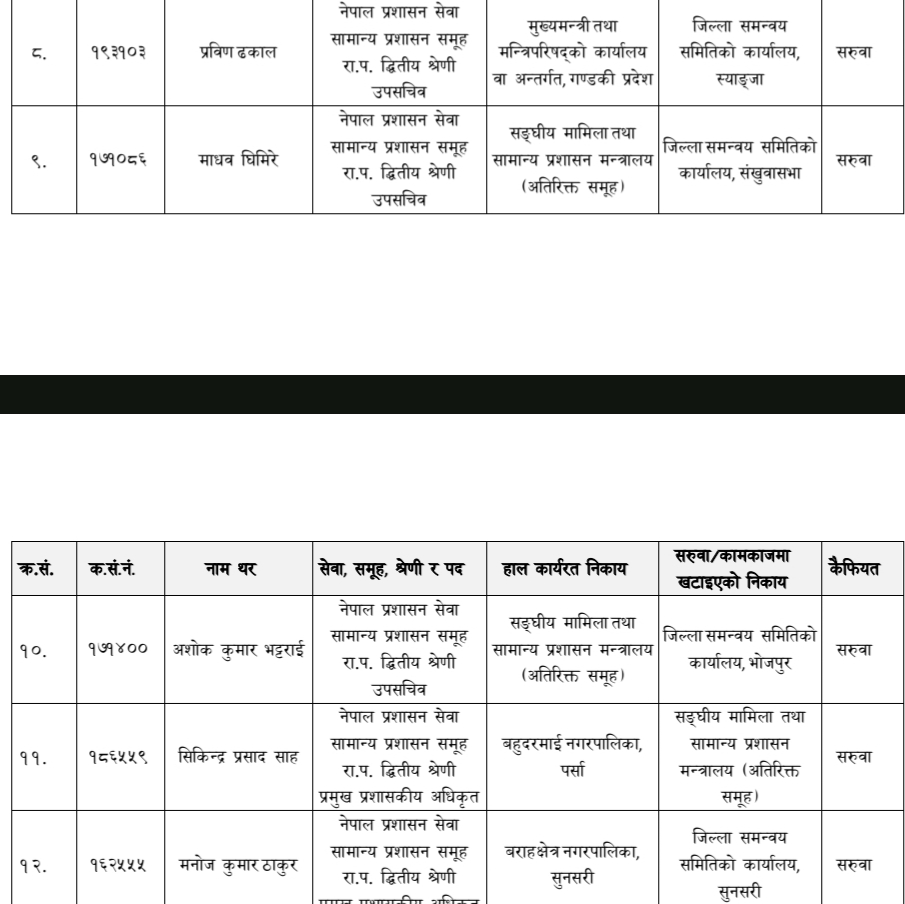 घिमिरेको ठाउँमा भक्तपुरमा प्रमुख मालपोत अधिकृत भएर अर्जुन राई गएका छन्। भट्टराईको ठाउँ ललितपुरमा गएका प्रमुख मालपोत अधिकृत भीमबहादुर बुढालाई भने सहज भएको छ।