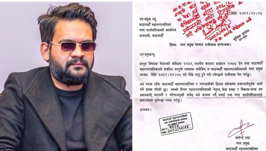 काठमाडौं। प्रधानमन्त्री बन्नका लागि काठमाडौं महानगरपालिकाका प्रमुख (मेयर) बालेन शाहले राजीनामा दिएका छन्। आईतबारदेखि लागू हुनेगरी मेयर बालेनले राजीनामा दिएका हुन्। उनको राजीनामा उपमेयर सुनिता डंगोलले स्वीकृत गरिसकेकी छिन्। बालेनको राजीनामा स्वीकृत भएसँगै कार्यबहाक मेयरको जिम्मेवारी सुनिताको काँधमा आएको छ।