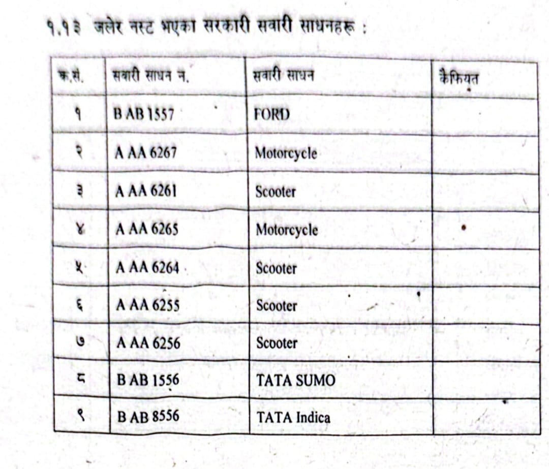 संसद् बैठक समेत चल्दै आएको अन्तर्राष्ट्रिय सम्मेलन केन्द्र जल्दा झन्डै १ दर्जन सवारी साधन जलेर नष्ट भए। जलेर ध्वस्त भइ ‘खरानी चाट्ने,फलान चुस्ने’ अवस्थामामा पुगेपनि करारमा राजनीतिक भर्ति भएर म्याद खुस्किएका व्यक्तिहरूलाई सवारी साधनमा हुइँकिन कुनै खाचो भएन। उनीहरू सरकारी नम्बर प्लेट कै सवारी साधनमा रजाइँ गरिरहेका छन्। ति सवारी साधन केहिले काही सेकुवा कर्नरतिर पनि भेटिन्छन्। अनधिकृत रूपमा विशिष्ट संरचना सञ्चालन तथा व्यवस्थापन विकास समिति अन्तर्गत रहेका सवारी साधन कब्जा हुँदा पनि जिम्मेवार पदाधिकारी मुकदर्शक भएर बसिरहेका छन्।