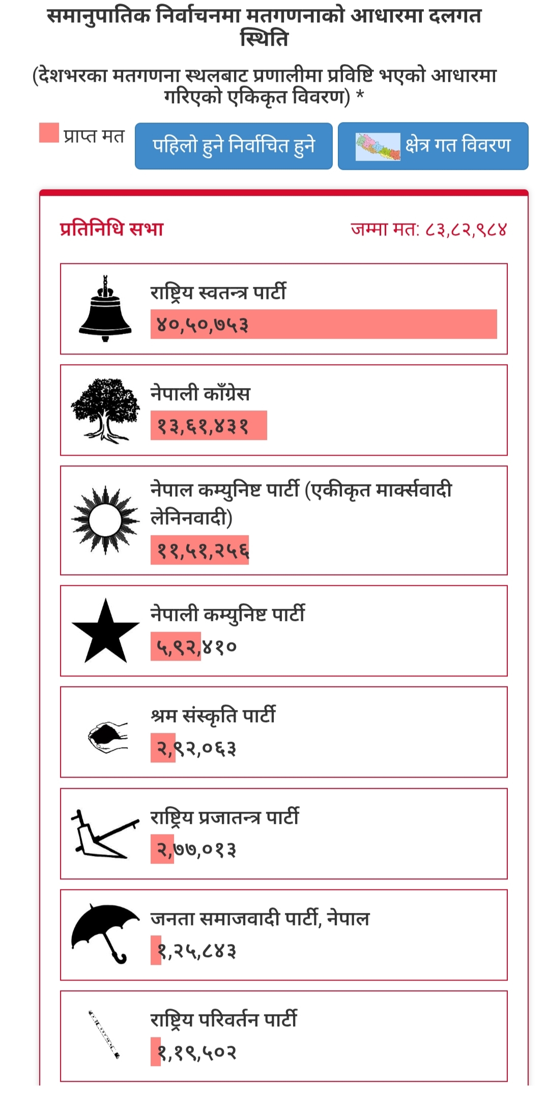 समानुपातिकमा रास्वपाले ४० लाख कटायो, कांग्रेस-एमाले प्रतिस्पर्धामा