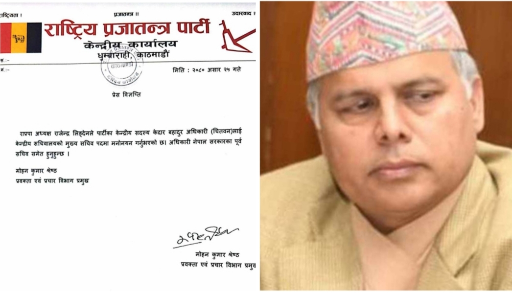 काठमाडौं। ‘भ्रष्टाचार गरेर खानु आमाको रगत खाए सरह हो’ भन्ने राष्ट्रिय प्रजातन्त्र पार्टीका अध्यक्ष राजेन्द्र लिङ्देनको मूल मन्त्र हो। तर, उनकै मुख्यसचिव केदारबहादुर अधिकारीलाई भ्रष्टाचार मुद्दा दायर गरेको छ। राप्रपाका मुख्यसचिव अधिकारीलाई अख्तियारले ४६ करोड १५ लाख बिगो मागदाबीसहित विशेष अदालतमा भ्रष्टाचार मुद्दा दायर गरेको हो।