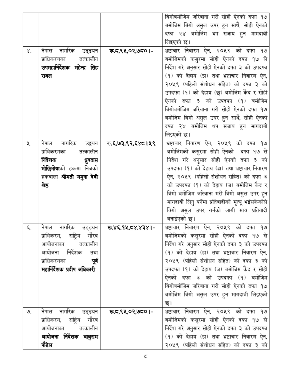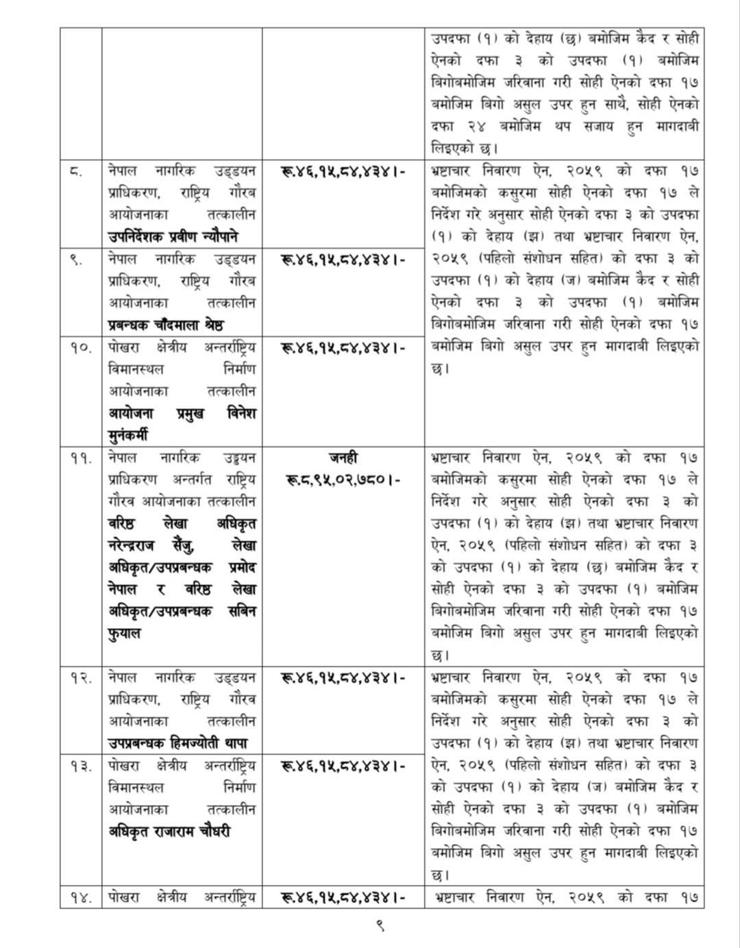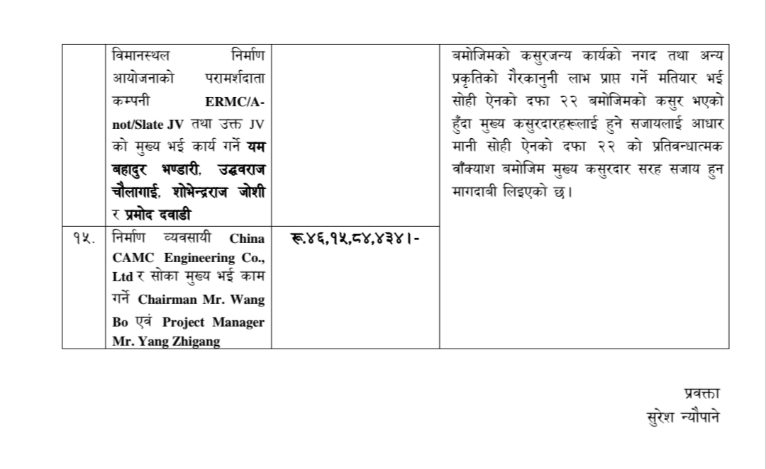 स्वास्थ्य सचिव समेत भइसकेका अधिकारी राष्ट्रिय प्रजातन्त्र पार्टीको मुख्यसचिवको भूमिकामा छन्। राप्रपाका अध्यक्ष लिङ्देनको कथनविपरीत मुख्यसचिव अधिकारी परामर्शदाता नियुक्तिमै भ्रष्टाचार गर्नेमा ‘दर्ज’ भएका हुन्। नागरिक उड्डयन प्राधिकरणका तत्कालीन उपमहानिर्देशक महेन्द्र सिंह रावल, आयोजना प्रमुख विनेश मुनाकर्मी, राष्ट्रिय गौरवका आयोजना निर्देशक बाबुराम पौडेल, प्रबन्धक चाँदमाला श्रेष्ठ, उपनिर्देशक प्रवीण न्यौपानेसहित डेढ दर्जन व्यक्तिविरूद्ध भ्रष्टाचार मुद्दा दायर भएको हो।