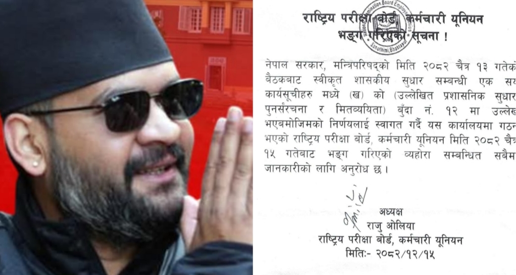 दलीय कर्मचारी ट्रेड युनियन खारेज गर्ने बालेन सरकारको अभियान राष्ट्रिय परीक्षा बोर्डबाट सुरू