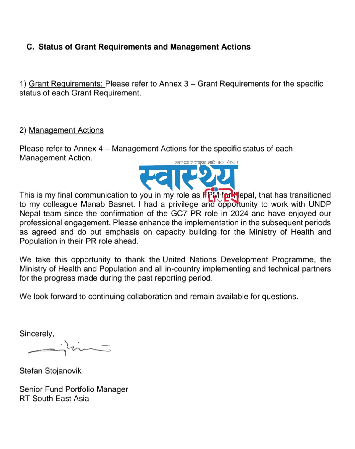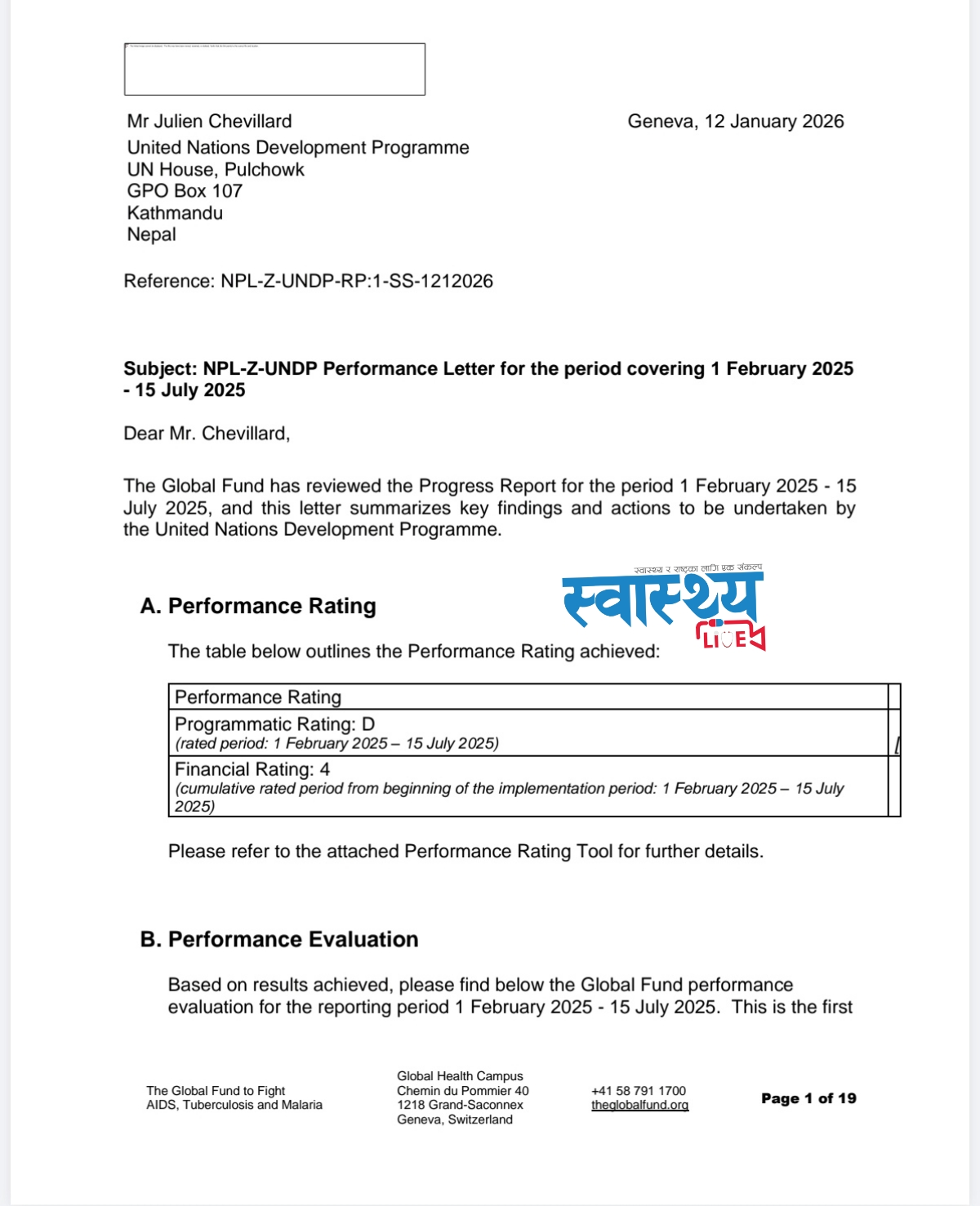 ग्लाेबल फन्डको ४४ मिलियन डलर अनुदान जोखिममा, यूएनडिपीको “डी” प्रदर्शनले गम्भीरता बढायो