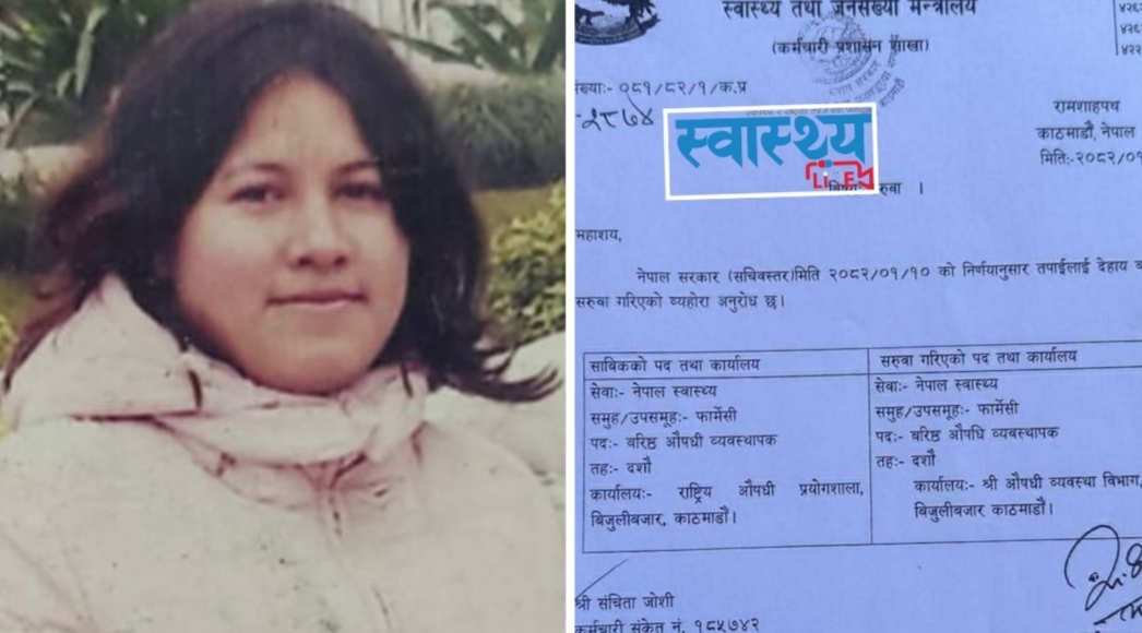एक मिनेटको बाटोमा सरूवा भएको एक वर्षमा पनि पुगिनन् वरिष्ठ औषधि व्यवस्थापक संचिता जोशी
