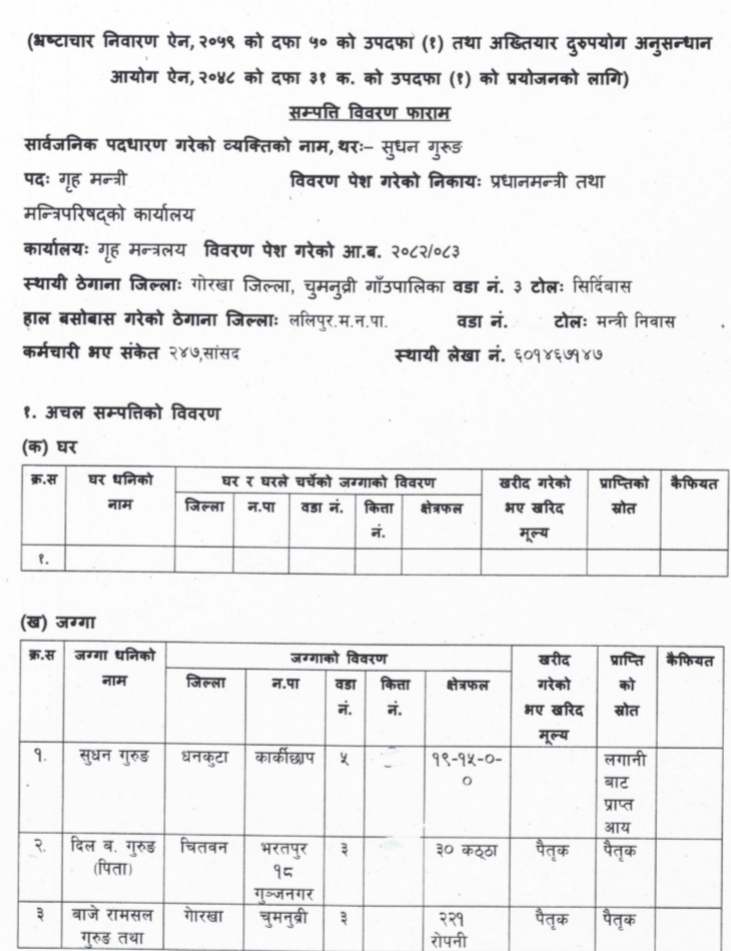 गृहमन्त्री गुरूङका बाजे रामसलको नाममा हदबन्दीभन्दा बढी जग्गा, होला त जफत?