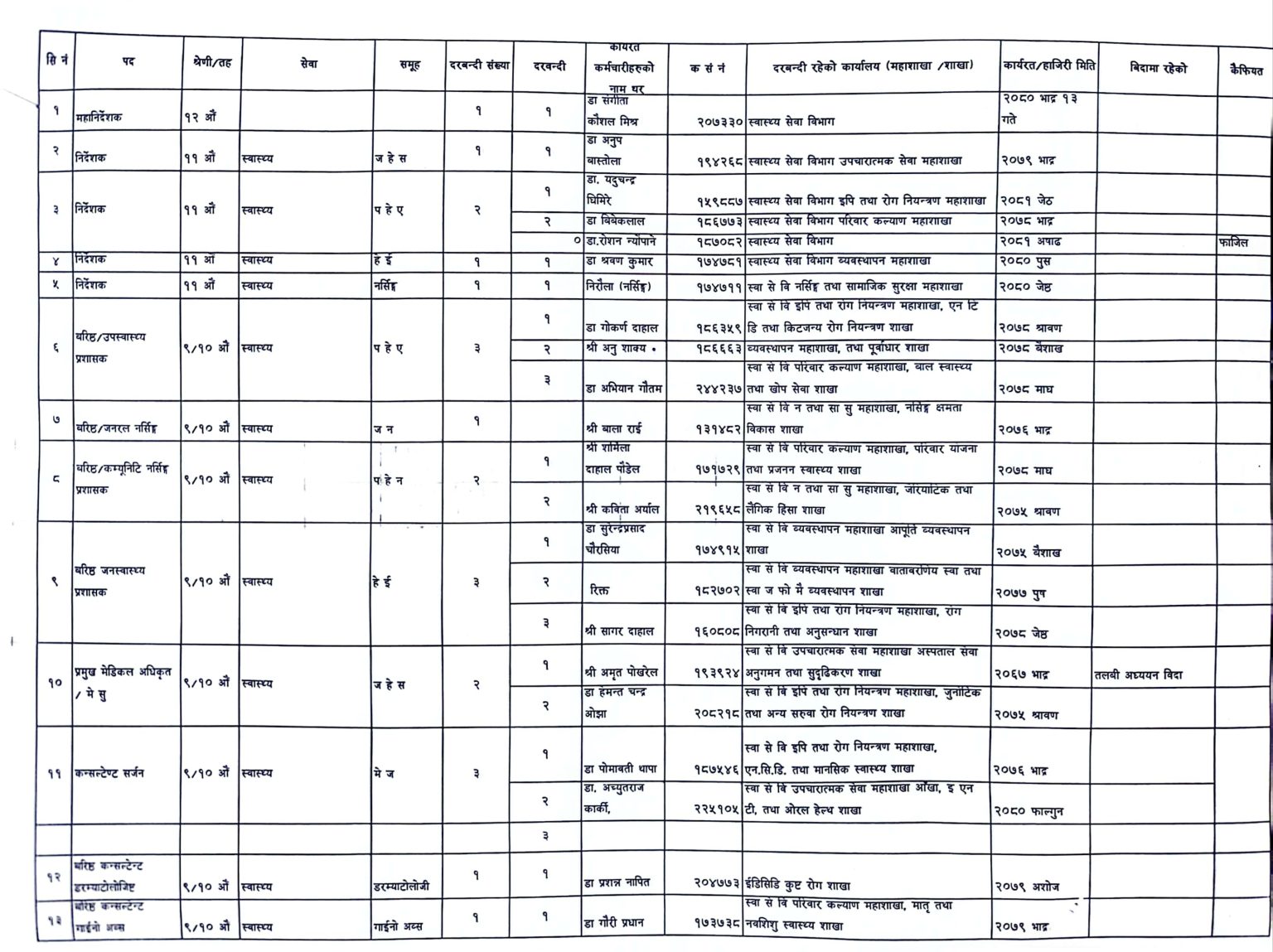 यसैबीच स्वास्थ्य सेवा विभाग तथा मातहतका शाखामा वर्षौदेखि एउटै पद तथा शाखामा कार्यरत कर्मचारीहरूको विवरण स्वास्थ्य लाइभले सार्वजनिक गरेकाे छ। मन्त्राालय गर्ने तर, विभागमा सेटिङगरी लामाे समय बस्ने कर्मचारी सरुवा नभए अहिले गरिएको सरुवा प्रणालीको निष्पक्षतामाथि थप प्रश्न उठ्नेछ।