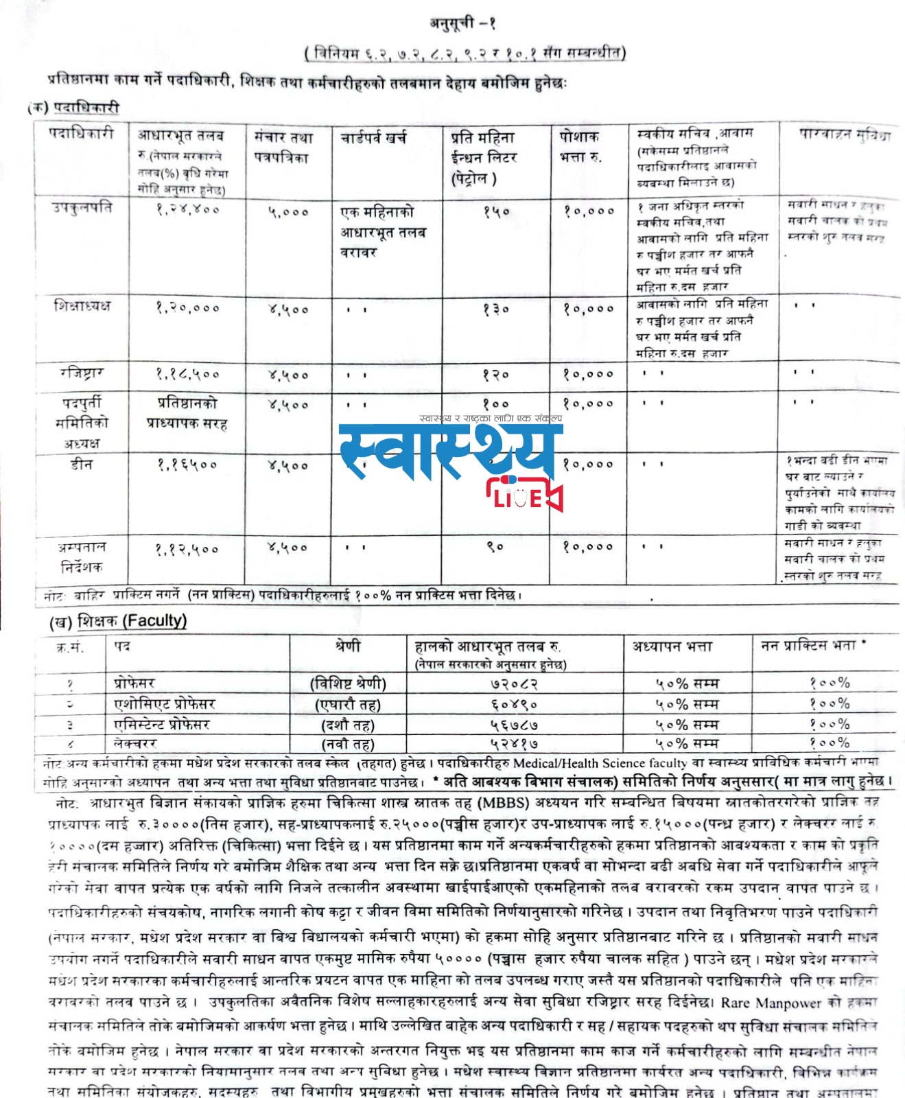 काठमाडौं । नेपालका विभित्र स्वास्थ्य विज्ञान प्रतिष्ठानमा आफू अनुकुल तलब सुबिधा रहेको छ । राज्यको नियन्त्रण बहिर रहेका प्रतिष्ठानहरुले आफूले पचाउन सक्ने तलब लिदै आएको देखिएको छ ।